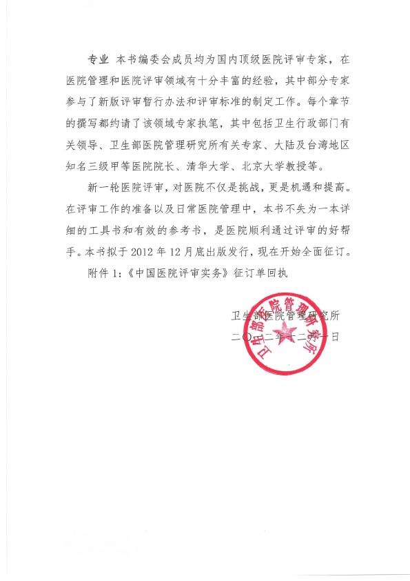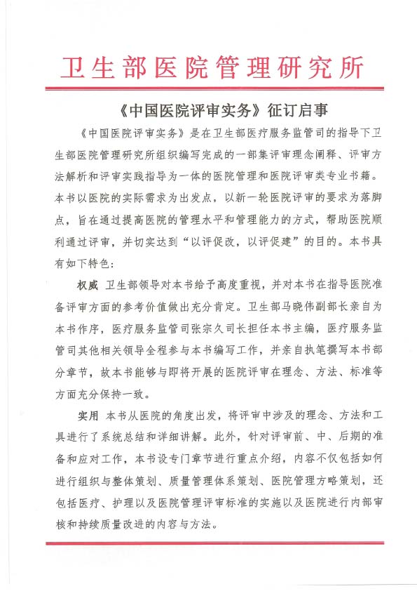 《中国医院评审实务》征订启事