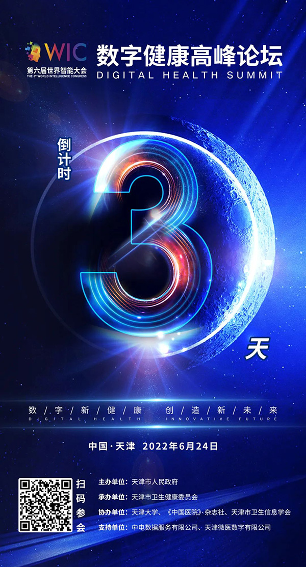 2022年6月24日,由天津市人民政府主办、天津市卫生健康委承办的第六届世界智能大会——数字健康高峰论坛将云端开幕。本届大会以“数字新健康 创造新未来”为主题,回顾天津市卫生全民健康信息化发展,突出并展示天津数字健康的发展成果。
