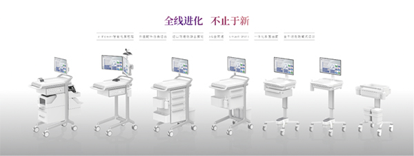联新智慧推车能满足医护人员移动智能化办公和数据实时共享的需求,通过搭载的临床应用系统软件,实现床旁下医嘱、查阅检验报告、入院评估记录模板化、入出院记录、评估记录智能分析、床旁医嘱执行与记录共享、高风险医嘱执行警示、危急值实时提醒等,让医护人员更快更便捷获得患者完整、可追溯的诊疗数据,对于医院管理者而言,意味着管理效率可以有效提升,医疗数据更加精准,助力医疗机构电子病历系统应用水平评级的提升。