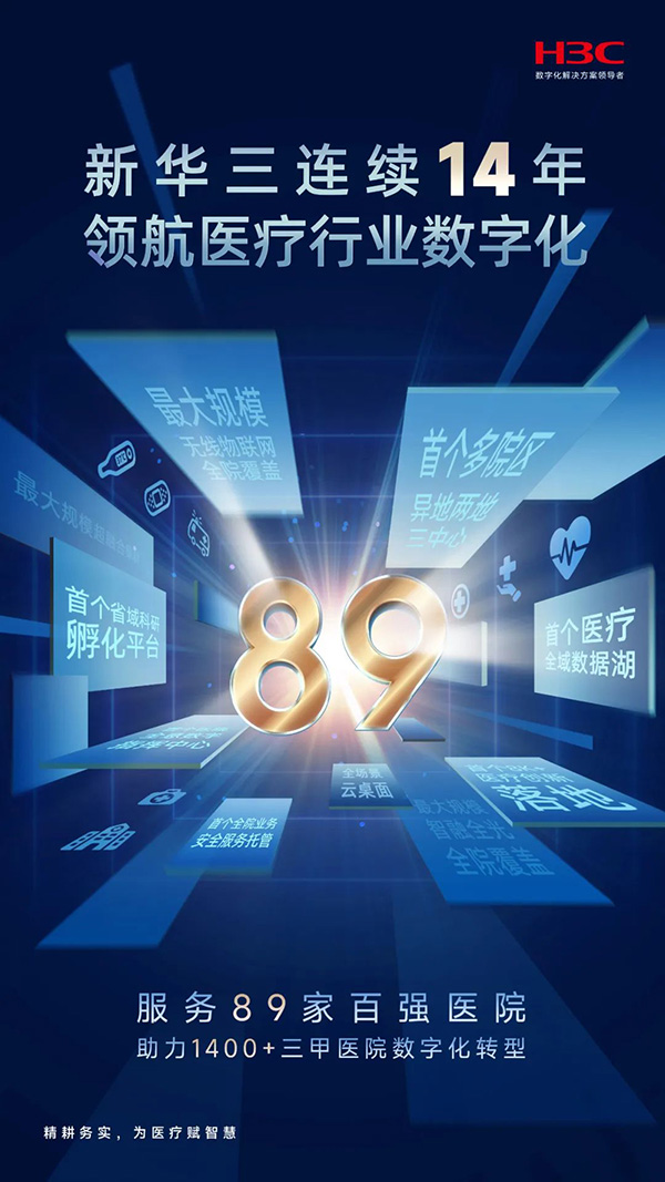 从2010年开始,复旦大学医院管理研究所每年都会推出上一年度的《中国医院排行榜》,是衡量各大医院学科建设、科研发展和院级管理水平的权威标尺之一。其中,新华三集团为89家中国百强医院提供数字化转型支撑。