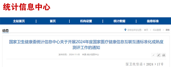 2024年度国家医疗健康信息互联互通标准化成熟度测评工作启动