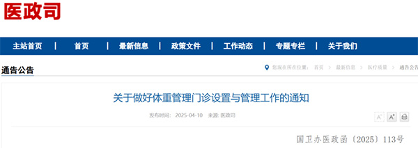 两部门联合印发关于做好体重管理门诊设置与管理工作的通知