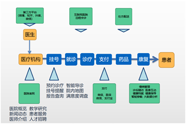 不过呢,从互联网医疗目前开展的业务看,无非是把慢病管理、术后康复、复诊、随访、预约、挂号、缴费、药品配送等这些原来院内的业务,迁移到了互联网上;把原来药剂科、临床科室、挂号收费室等科室的一些工作变成了与配送公司、互联网技术服务公司、互联网运营商等外部企业的合作,利用互联网技术共同完成了对患者的服务。