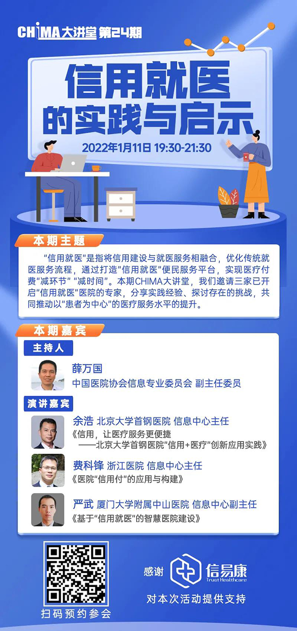 直播预告|1月11日CHIMA大讲堂第24期,探讨信用就医的实践与启示